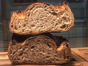 Fabrication de pains bios au levain naturel cuits au feu de bois, biscuits (cookies, croquets, spéculoos, rochers coco), gâteaux, muffins, tartes... Viennoiseries et Pâtisseries 100% Bio. Pizzas à emporter cuites au feu de bois.